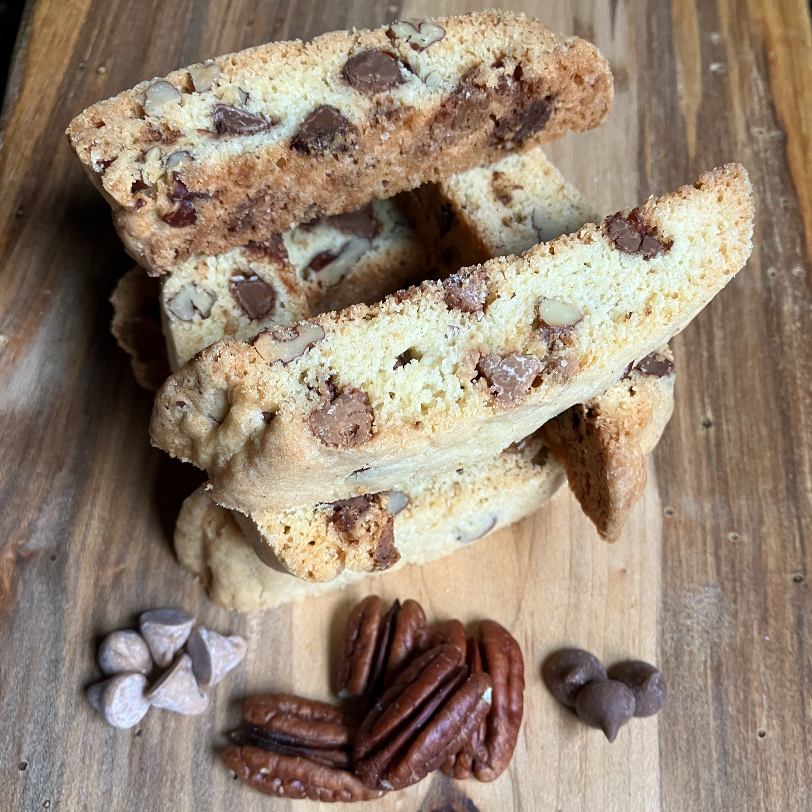 | Ingredients: | Unbleached Wheat Flour (Unbleached Hard Red Wheat Flour, Enzyme), Cane Sugar, Butter, Egg, Milk Chocolate Chips (Sugar, Milk Cocoa Butter, Chocolate Liquor, Soy Lecithin, Natural Flavor), Pecans, Caramel Sea Salt Chips (Cane Sugar, Palm Kernel Oil, Whole Milk Powder, Nonfat Dry Milk, Cocoa Powder, Sea Salt, Soy Lecithin, Natural Flavor, Paprika Oleoresin), Baking Powder (Corn Starch, Sodium Bicarbonate Sodium Aluminum Sulfate, Monocalcium Phosphate), Vanilla Extract (Vanilla Bean Extractives in Water, Alcohol), Sea Salt |