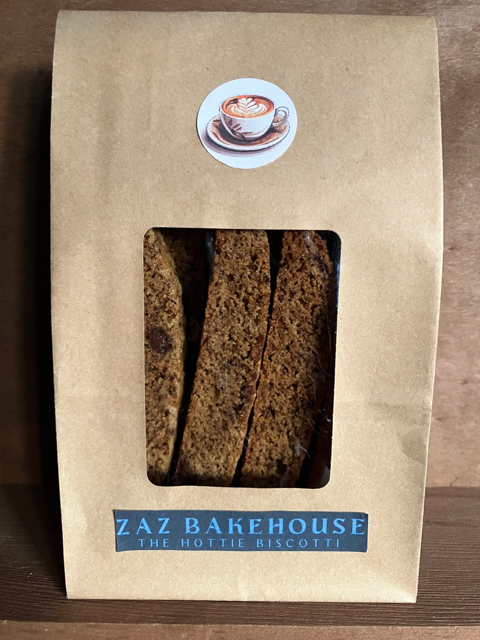 Coffee lovers unite! Think of this as a dry latte that you can dip in your wet latte or enjoy straight up, strong coffee flavor with bursts of dark chocolate covered coffee beans. Approximately 6 oz.