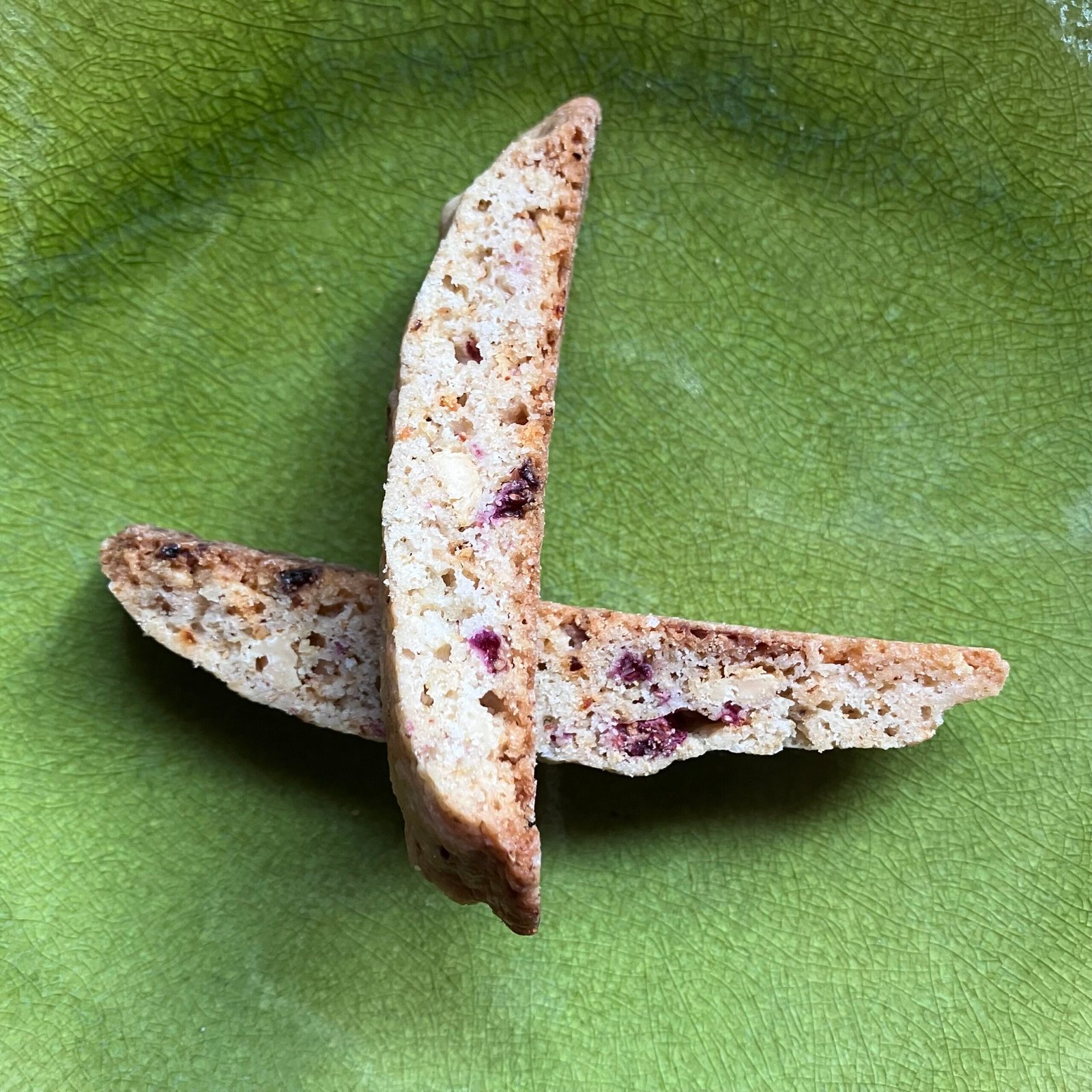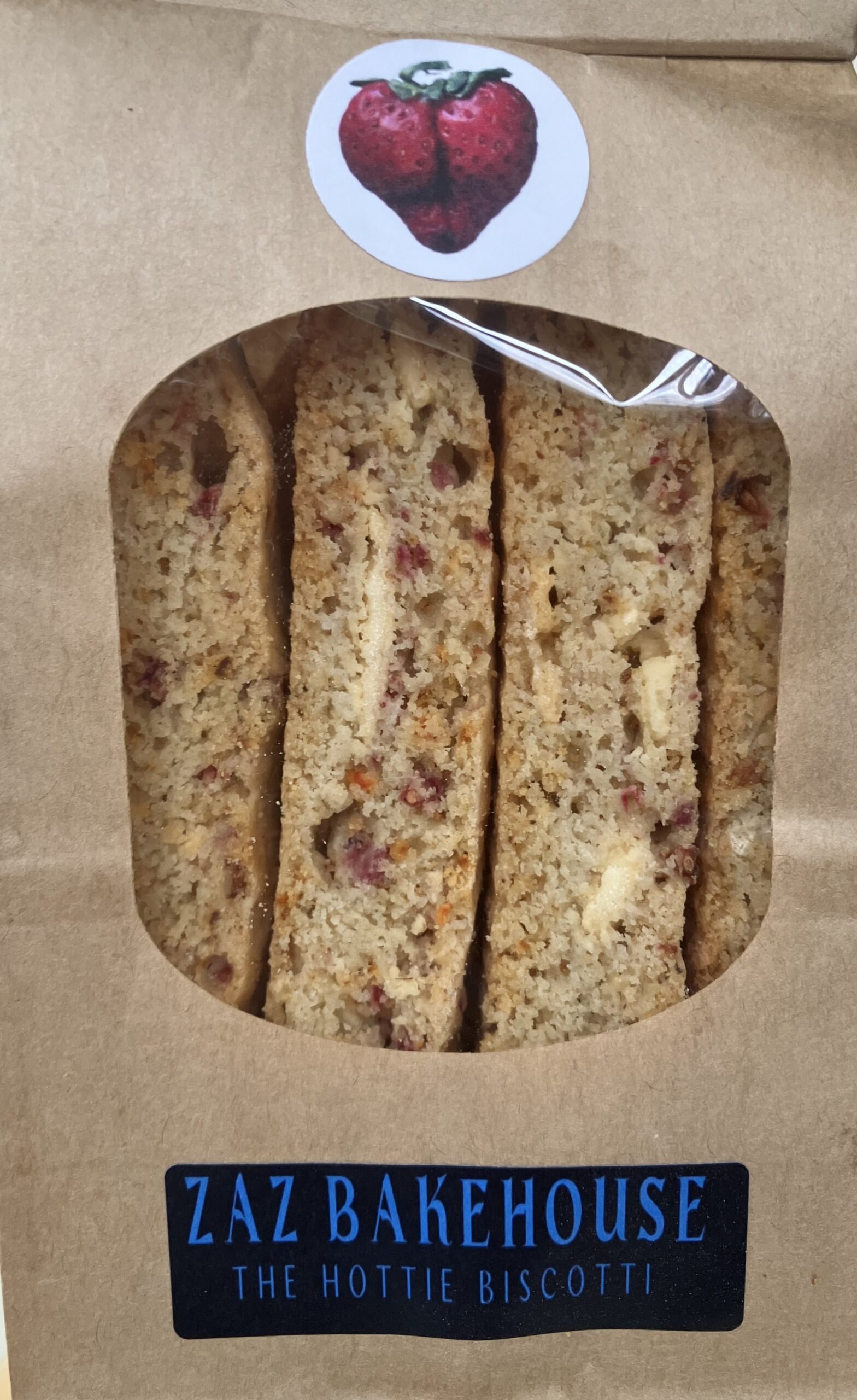 Ingredients: Unbleached Enriched Wheat Flour (Wheat Flour, Niacin, Reduced Iron, Thiamine Mononitrate, Riboflavin, Folic Acid, Enzyme), Cane Sugar, Butter, Egg, White Chocolate (Cane sugar, vegetable oil (hydrogenated palm kernel and palm oil glyceryl lacto esters), nonfat dry milk, whole milk powder, soy lecithin, salt, natural flavor), Fruit Powder (Raspberry, Strwaberry or Tart Cherry), Freeze-Dried Fruit (Raspberry, Strawberry or Tart Cherry), Baking Powder (Corn Starch, Sodium Bicarbonate, Monocalcium Phosphate), Dried Pepper, Vanilla Extract (Vanilla Bean Extractives In Water, Alcohol), Sea Salt